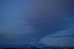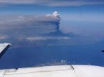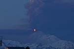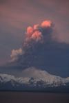 "At about 01:30 UTC, June 3 (5:30 p.m. AKDT on June 2) , the amplitude of the seismic tremor increased significantly; Web camera, satellite views, and several pilot reports all indicated that a period of robust ash emission was underway. At this point, AVO upgraded the Volcano Alert Level and Aviation Color Code from ORANGE/WATCH to RED/WARNING, where it remained for about the next 24 hours. During this period, the volcano erupted almost continuously, and observers in Cold Bay reported incandescence at the summit, seismic stations recorded lahar signals, seismic tremor remained at high levels, and strong thermal signals were evident in satellite data. The highest ash plume generated during this period of heightened activity reached as high as 6,700 m (22,000 ft) ASL (based on pilot reports) and extended about 100 km (60 mi) to the southeast over Sand Point and Unga Island. Although there were no reports of ashfall in nearby communities on June 2-3, significant SO2 emissions were detected in infrared atmospheric sounding interferometer (IASI) satellite data on June 3.