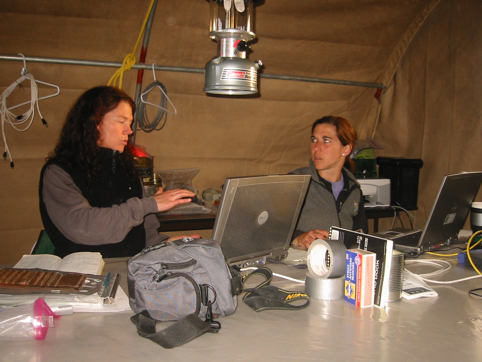 AVO geologists Kate Bull and Kristi Wallace enter data into our field database.