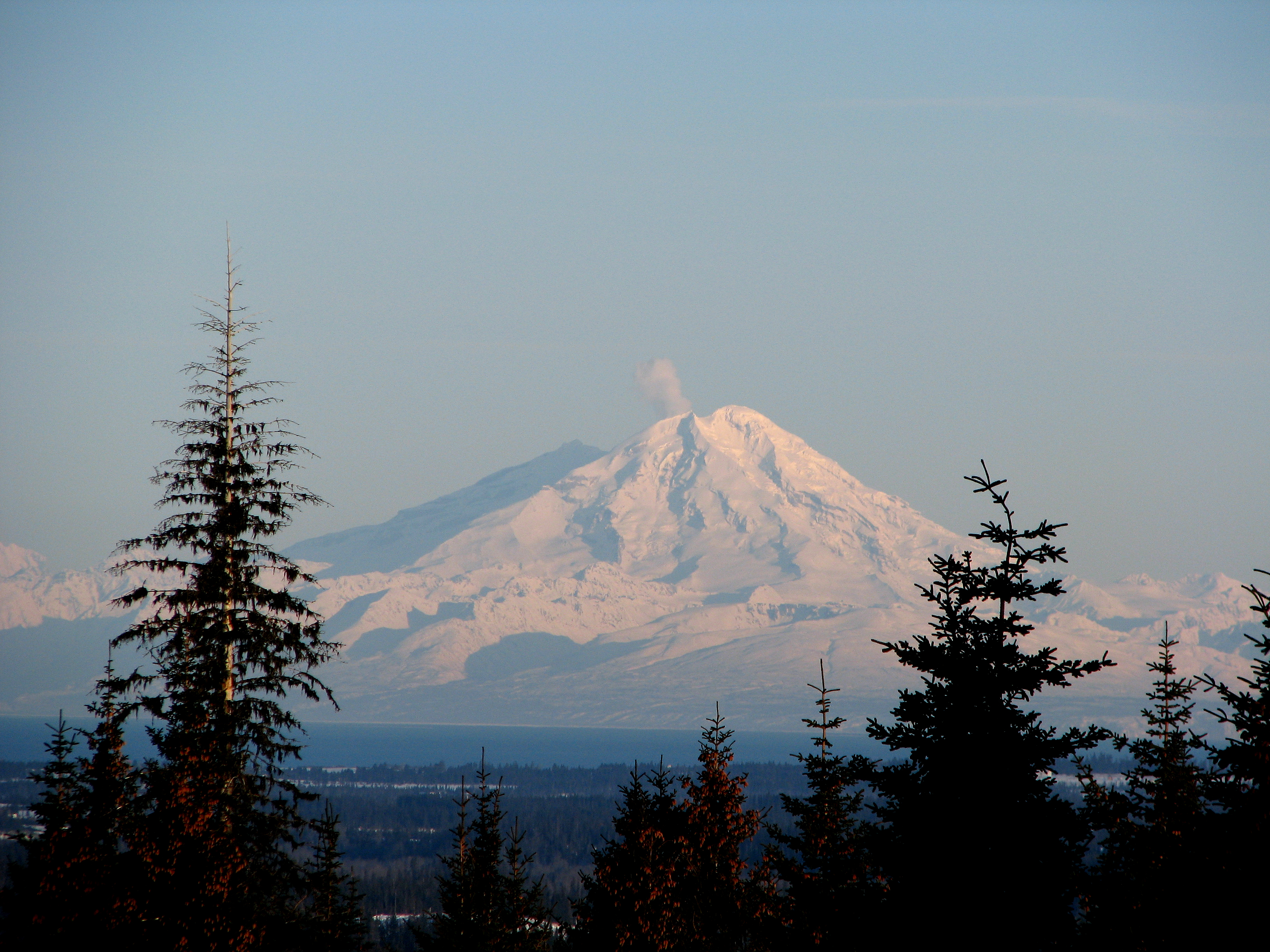 Redoubt steaming on the morning of March 18, 2009. Photograph taken from near Homer, AK, courtesy of Dennis Anderson.