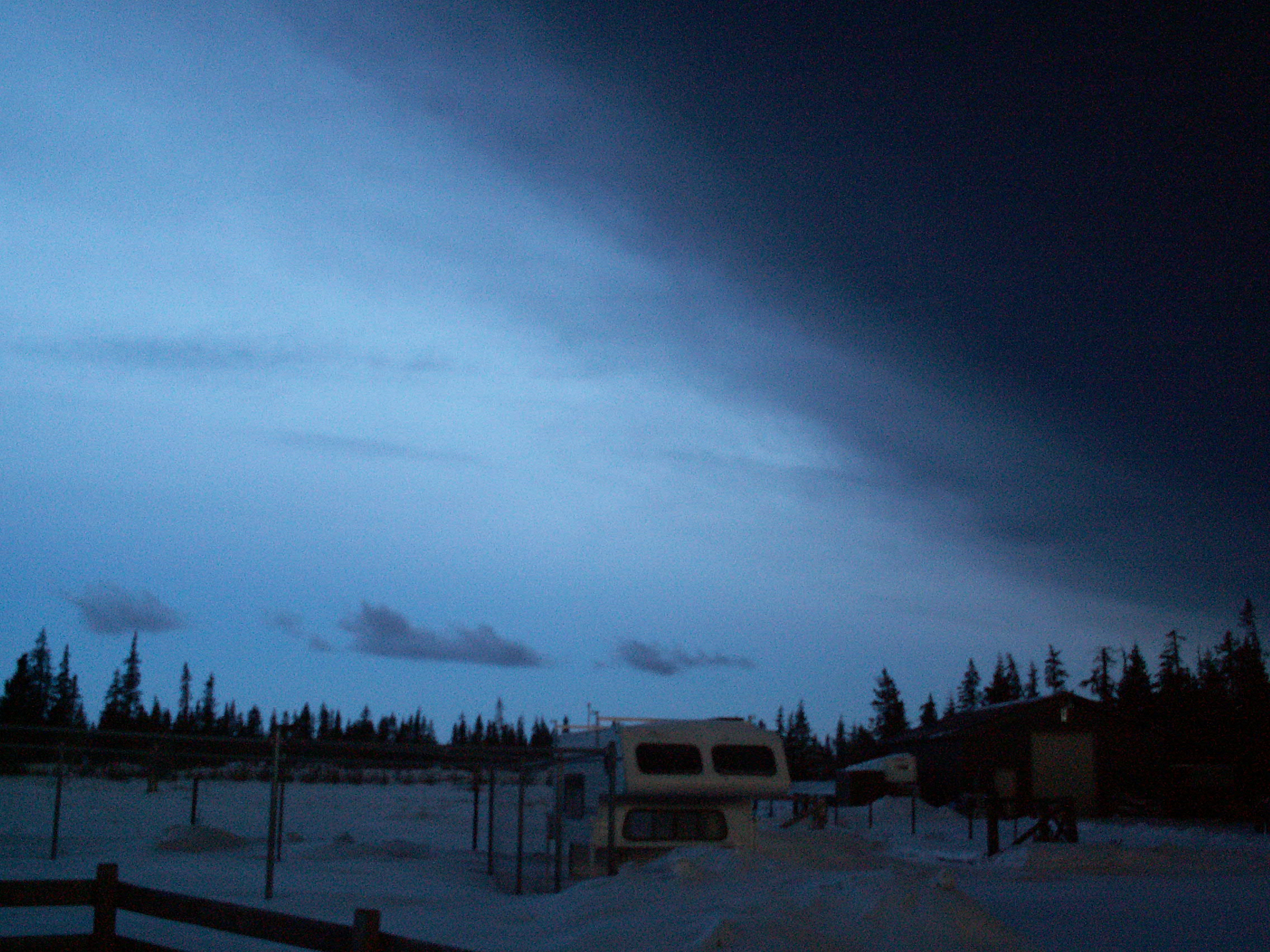 Ashfall and ash cloud from Redoubt, on the morning of April 4, 2009, as seen from Anchor Point. Photograph courtesy of Nancy and Randy Schmoker.