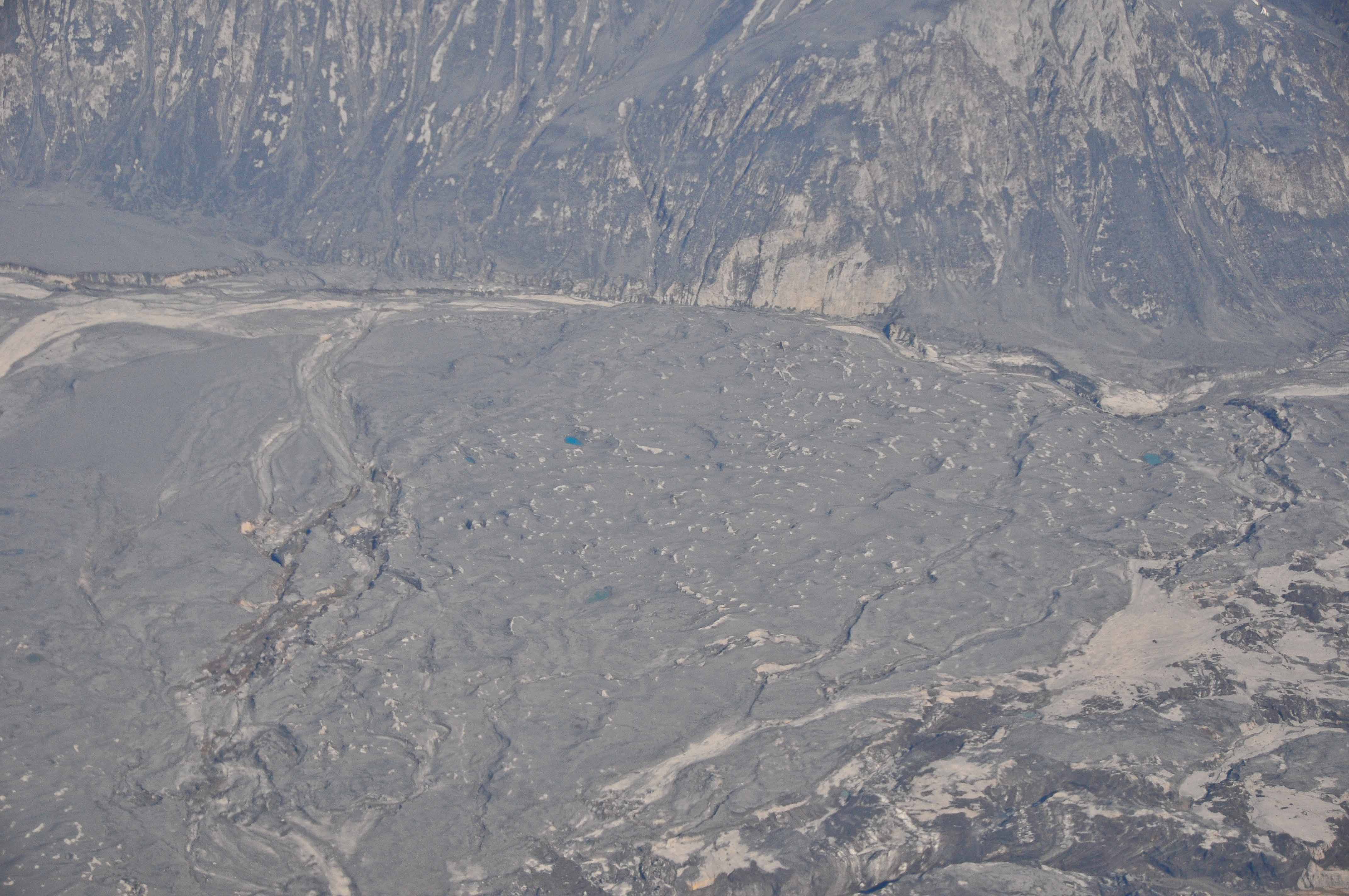 Ash covered surface of Drift glacier piedmont lobe. View is toward the north.