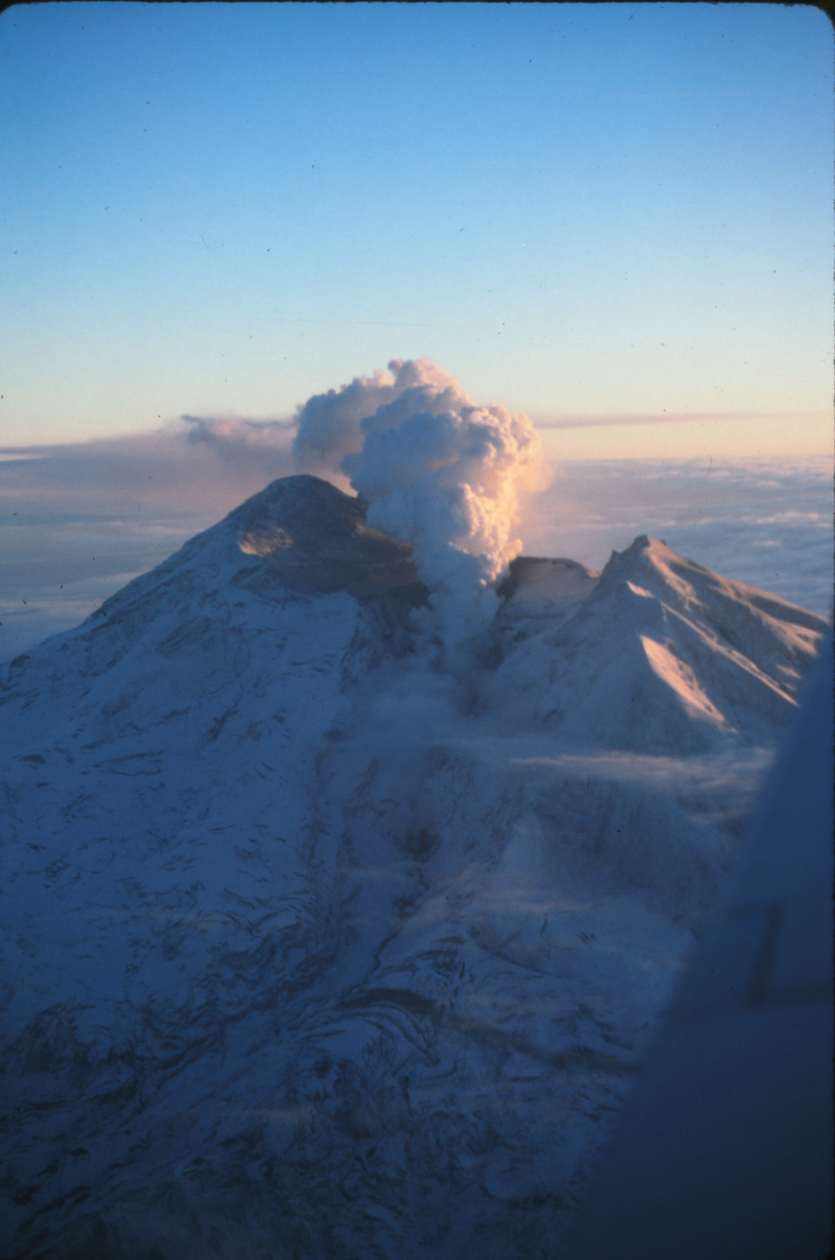 "Three eruptions occurred in the next two weeks during which time the vent remained open. The January 8 event occurred with no precursory warnings and the resulting ashfall on the Kenai Peninsula disrupted commerce and transportation. Open-vent eruptions on January 11 and 16 resulted in minor debris flows down the Drift River.