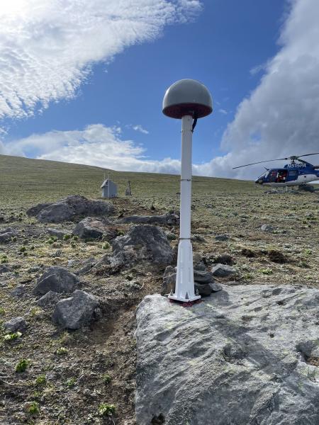AVO field team installing a new GPS monument at site GSTR to monitor changes in Great Sitkin Volcano, western Aleutians.