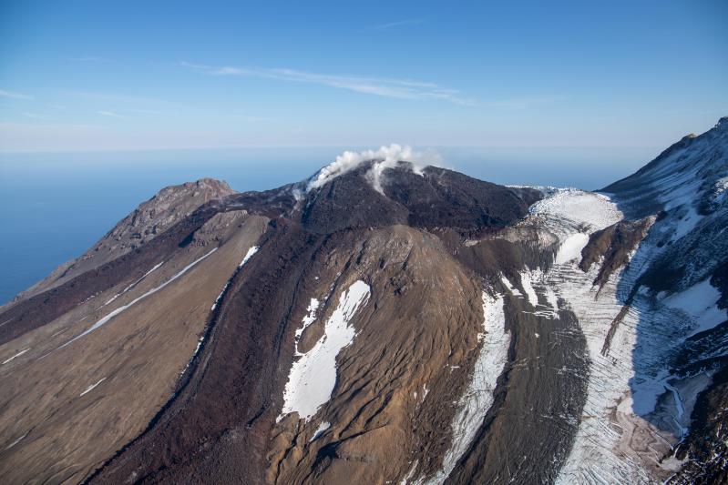 "Leading up to 2021, activity at Great Sitkin Volcano was characterized by years of precursory seismicity, elevated surface temperatures, and gas emissions. This unrest culminated with a Vulcanian explosion on May 25, 2021, an event successfully forecasted by AVO in the hours prior. An effusive eruption then began in mid-July, gradually filling both the 2021 explosion crater and much of the summit crater with lava, which then spilled down the volcano’s flanks. Lava effusion persisted at the volcano throughout the rest of the year. The 2021 eruption followed the pattern of the 1974 eruption: an explosive event followed by lava effusion in the summit crater. AVO crews visited the volcano in June 2021 to sample the explosive eruption deposits and to carry out a gas and airborne imaging survey.