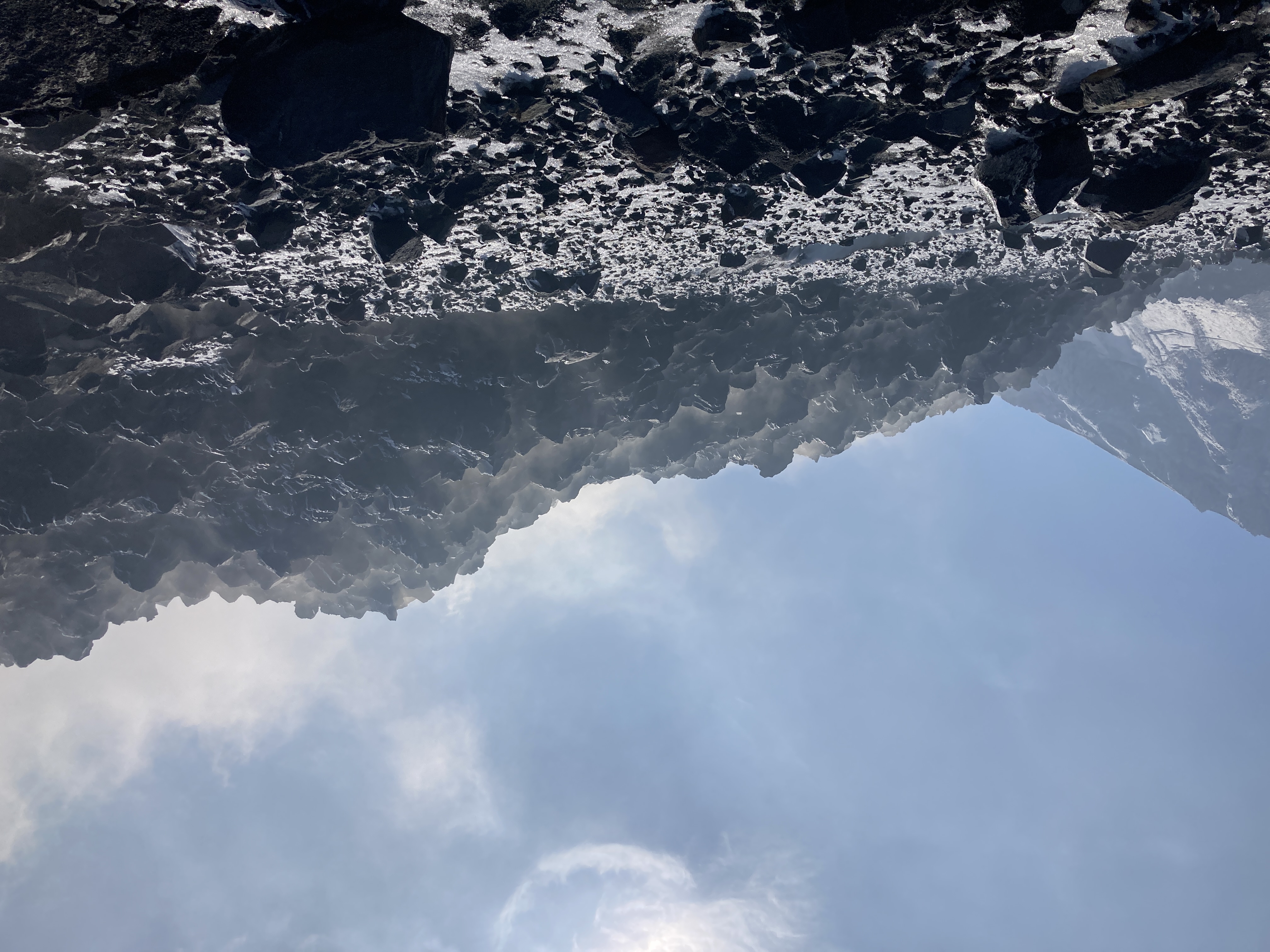 In the first half of April, both the northwestern and eastern lobes grew, but in the latter half of April through mid-May only the northwestern lobe continued to grow. By April 12, it had reached 850 ft (260 m) in length. The active part of the lava flow was observed to be snow-free and steaming when clear satellite views allowed.