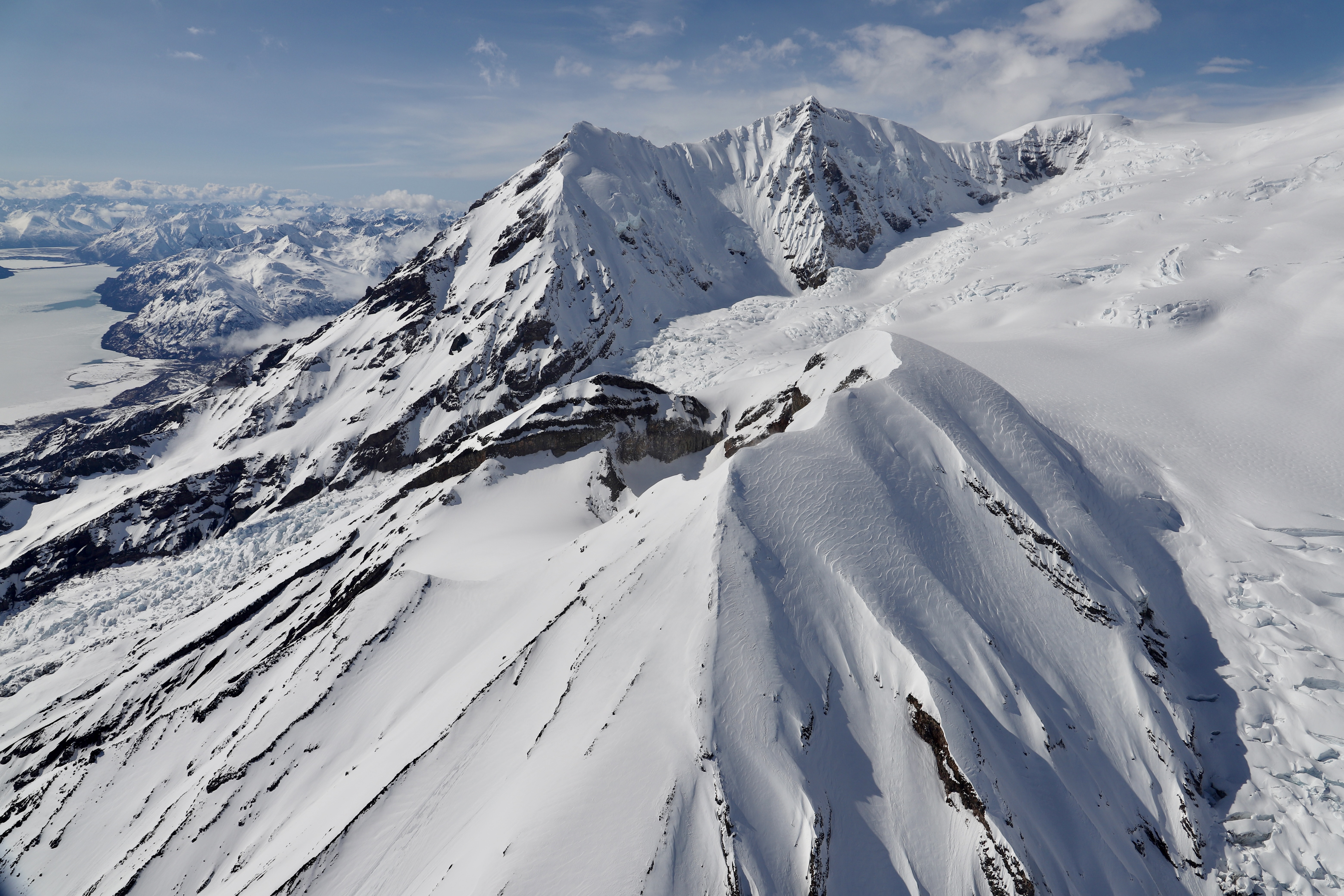 Crater Peak on the south flank of Mount Spurr during an Alaska Volcano Observatory overflight on April 23, 2025.