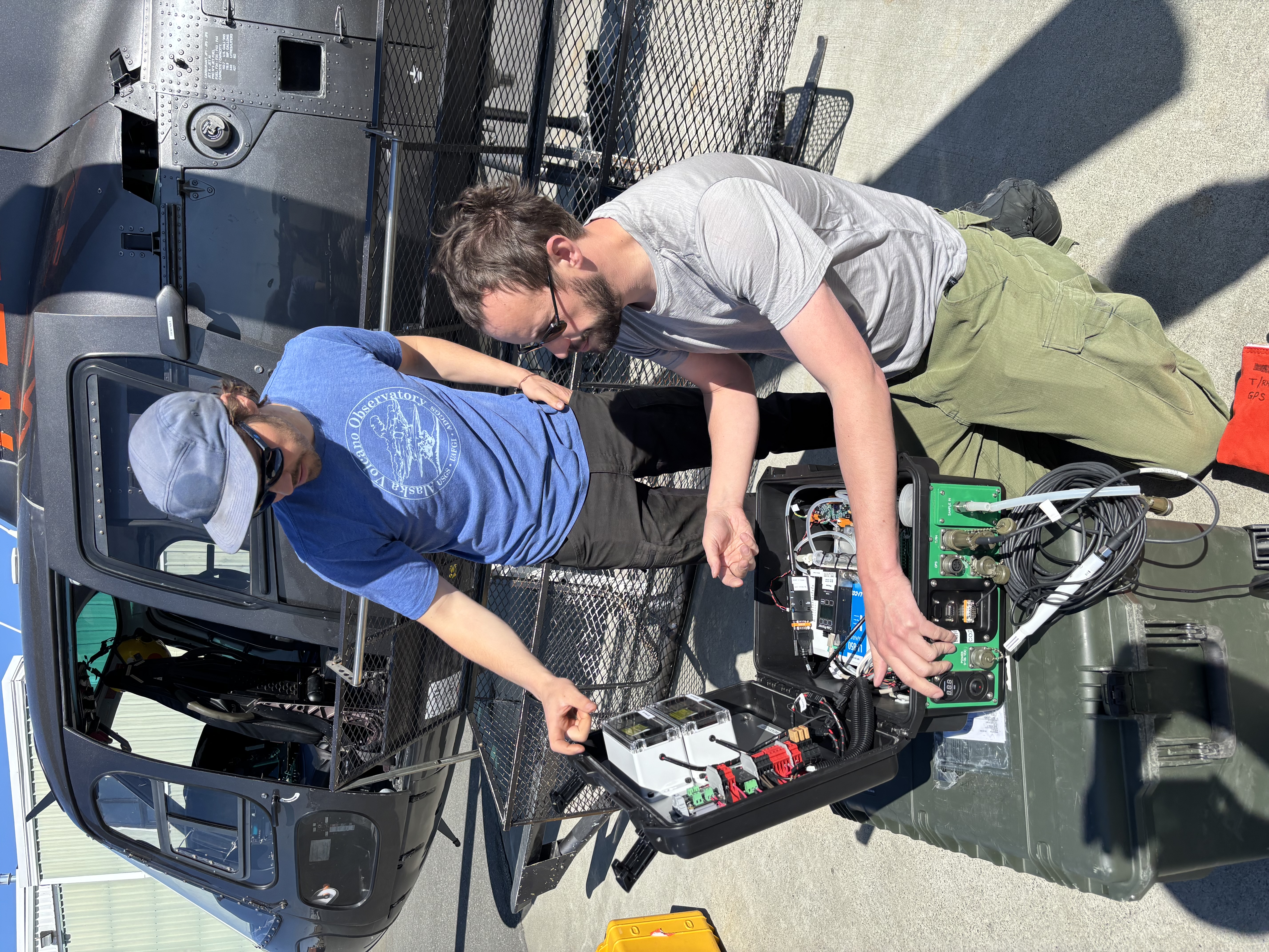 Alaska Volcano Observatory staff set up equipment to measure volcanic gas compositions before an overflight of Mount Spurr on May 23, 2025.