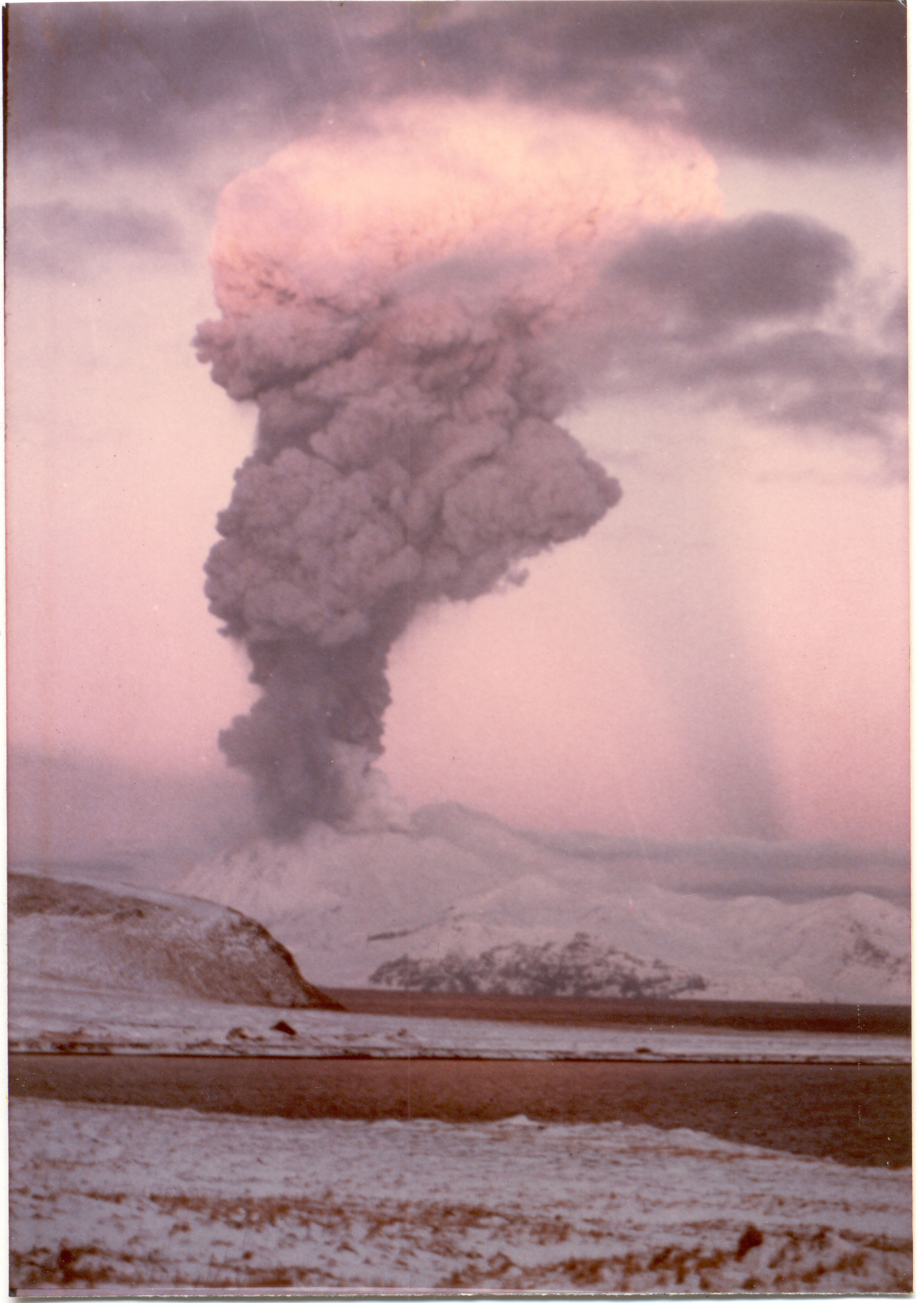 Eruption column of Great Sitkin, 1974. Photo taken from Adak, Alaska.