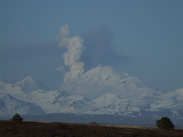 Pavlof in eruption, May 14, 2013, between 4 and 8 pm. Photo courtesy of Jeffrey Doerning, Cold Bay.