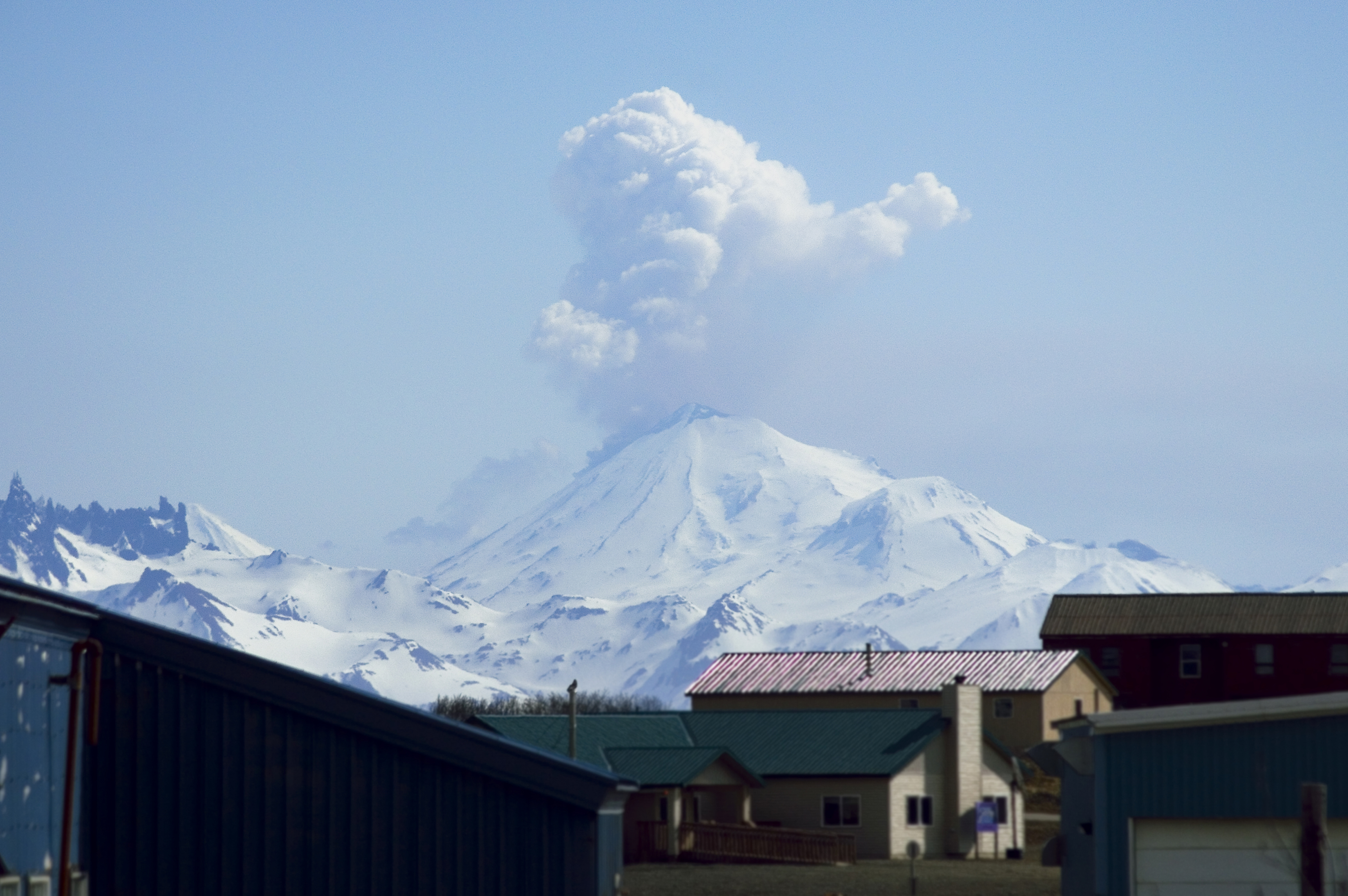 Eruption of Pavlof Volcano as viewed from Cold Bay, Alaska, 37 miles southwest of the volcano.