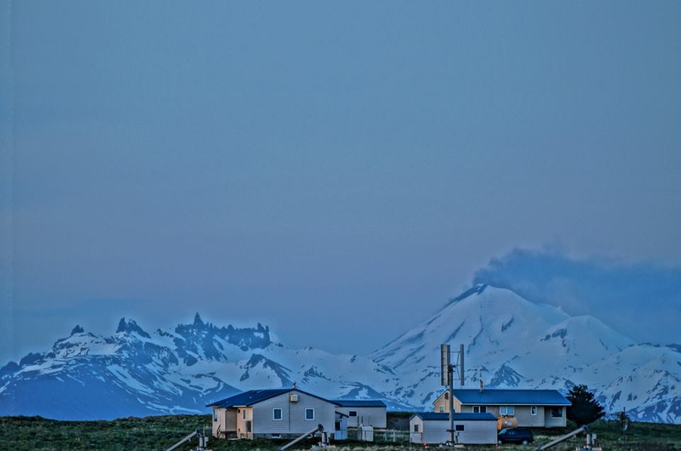 View of Pavlof eruption, 8:30 am June 1, 2014, as seen from Cold Bay. Cold Bay is approximately 36 miles SW of Pavlof. Photograph courtesy of Robert Stacy.