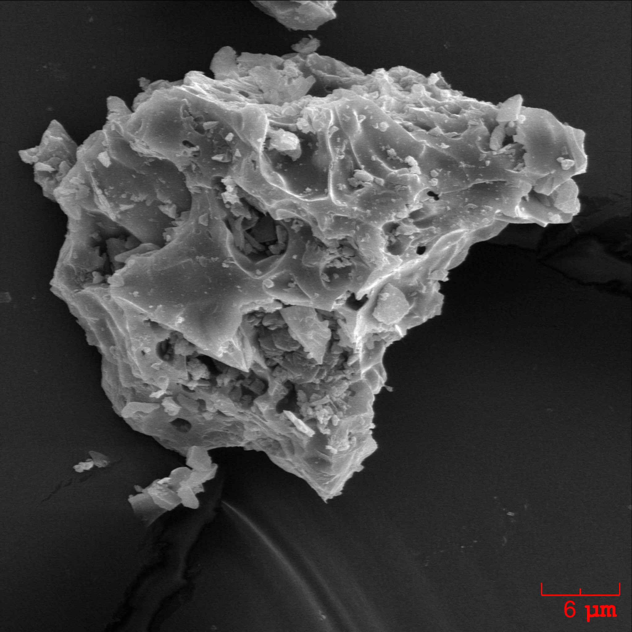 SEM image of a vesicular ash particle erupted by Augustine volcano on January 13, 2006. The ash sample was collected during the ashfall in Homer, Alaska by John Paskievitch, AVO. The image was acquired by Pavel Izbekov using ISI-40 Scanning Electron Microscope at the Advanced Instrumentation Laboratory, University of Alaska Fairbanks.