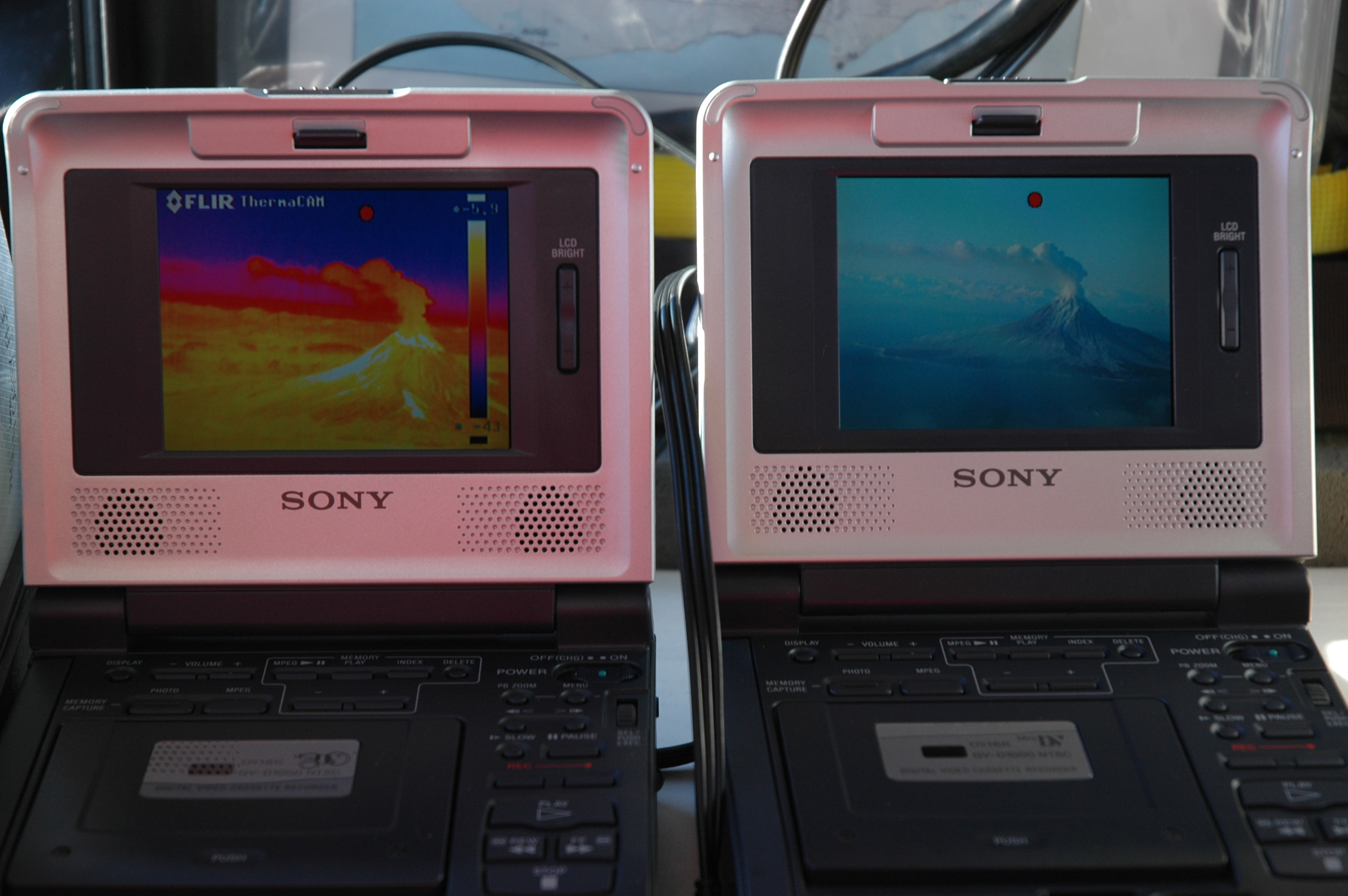 Inside the helicopter during FLIR flight, showing collection of thermal and visible images.