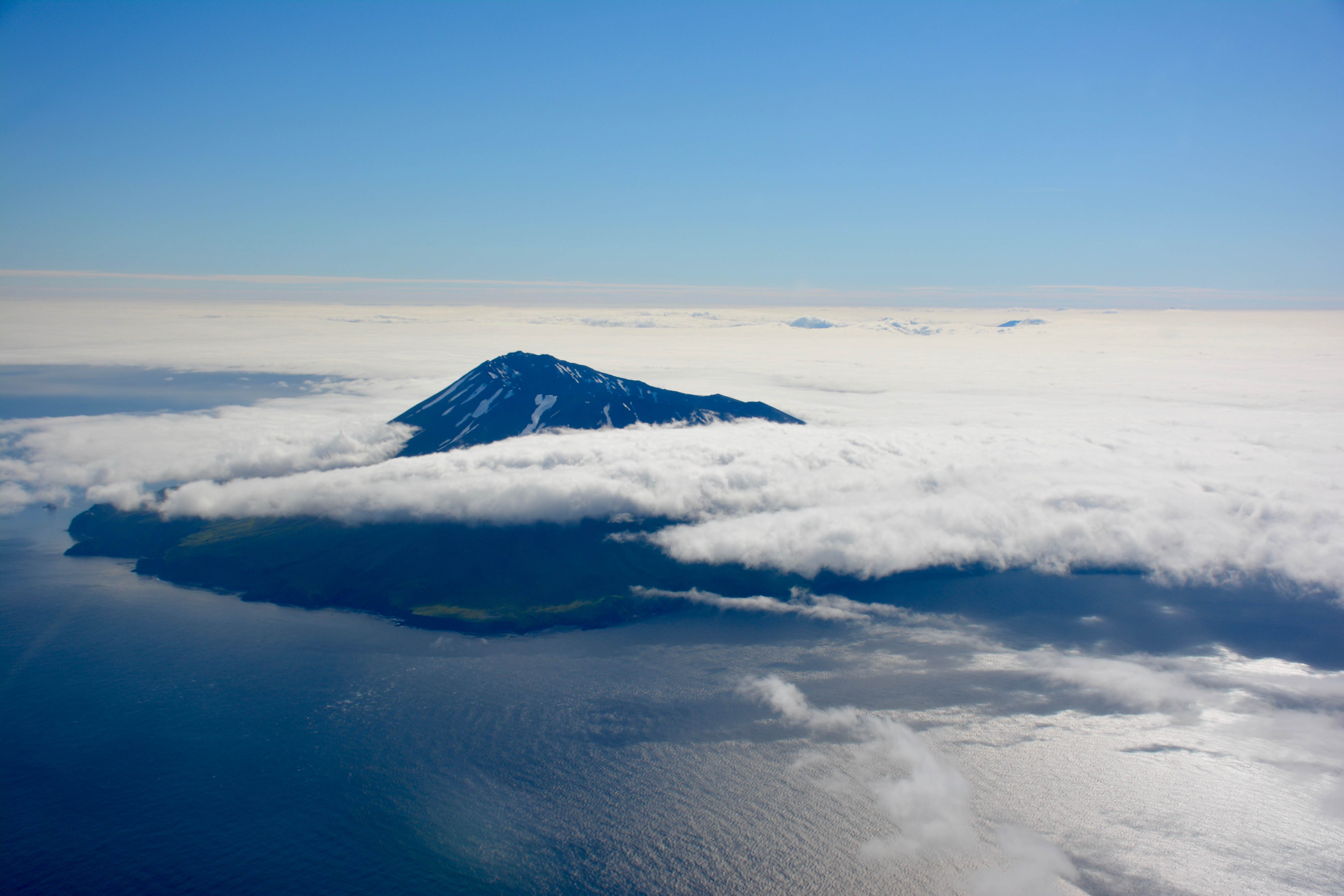 Herbert Volcano, with Yunaska and Amukta Volcanoes peaking out in the background.