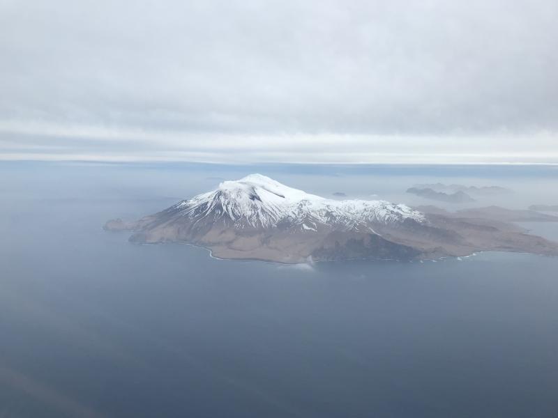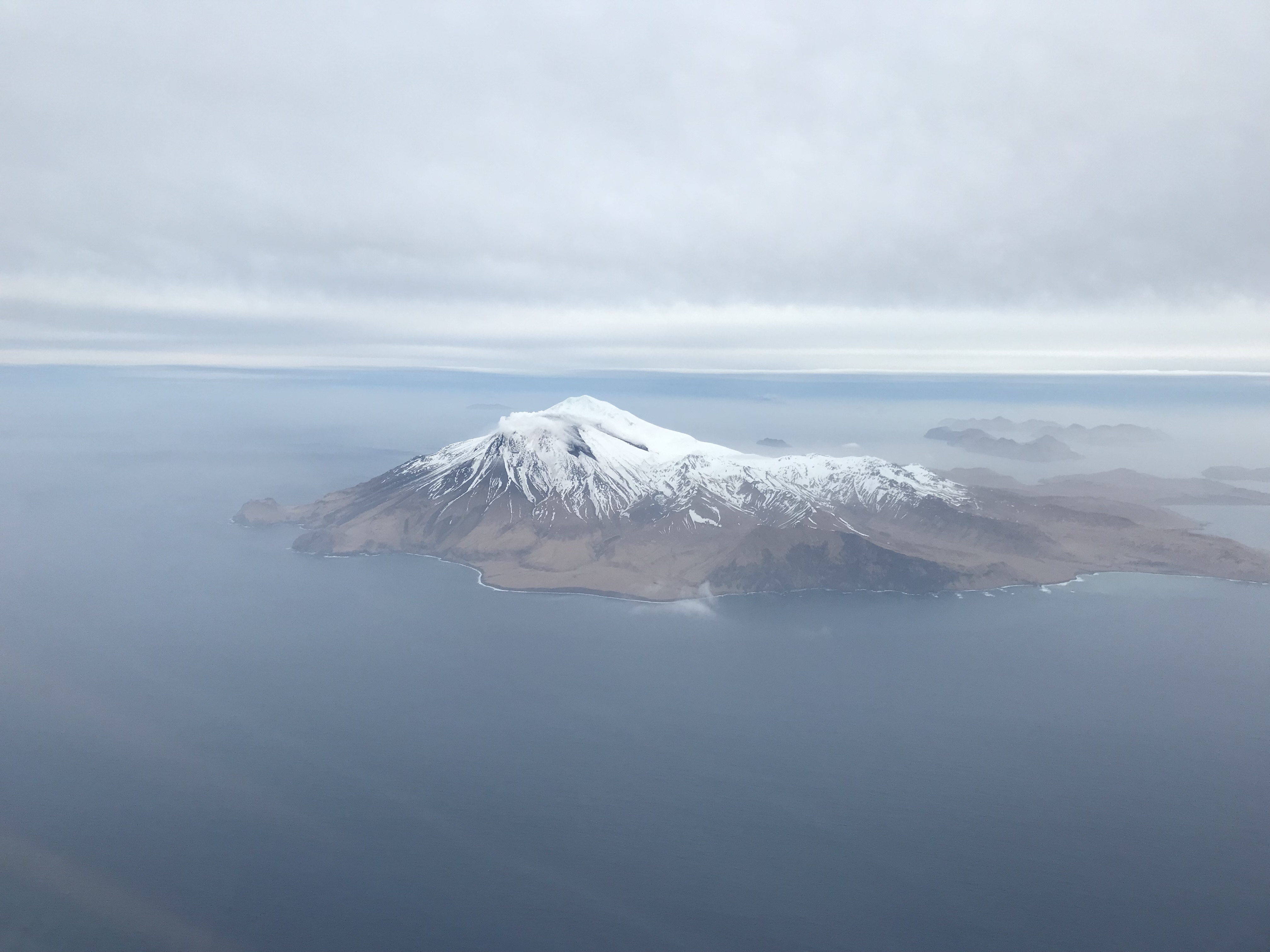 Photo of Great Sitkin Volcano taken during Alaska Airlines flight 187 from Adak to Anchorage on Sunday, December 19, 2021. Photo by First Officer Joseph Leman, submitted by Captain Dave Clum.